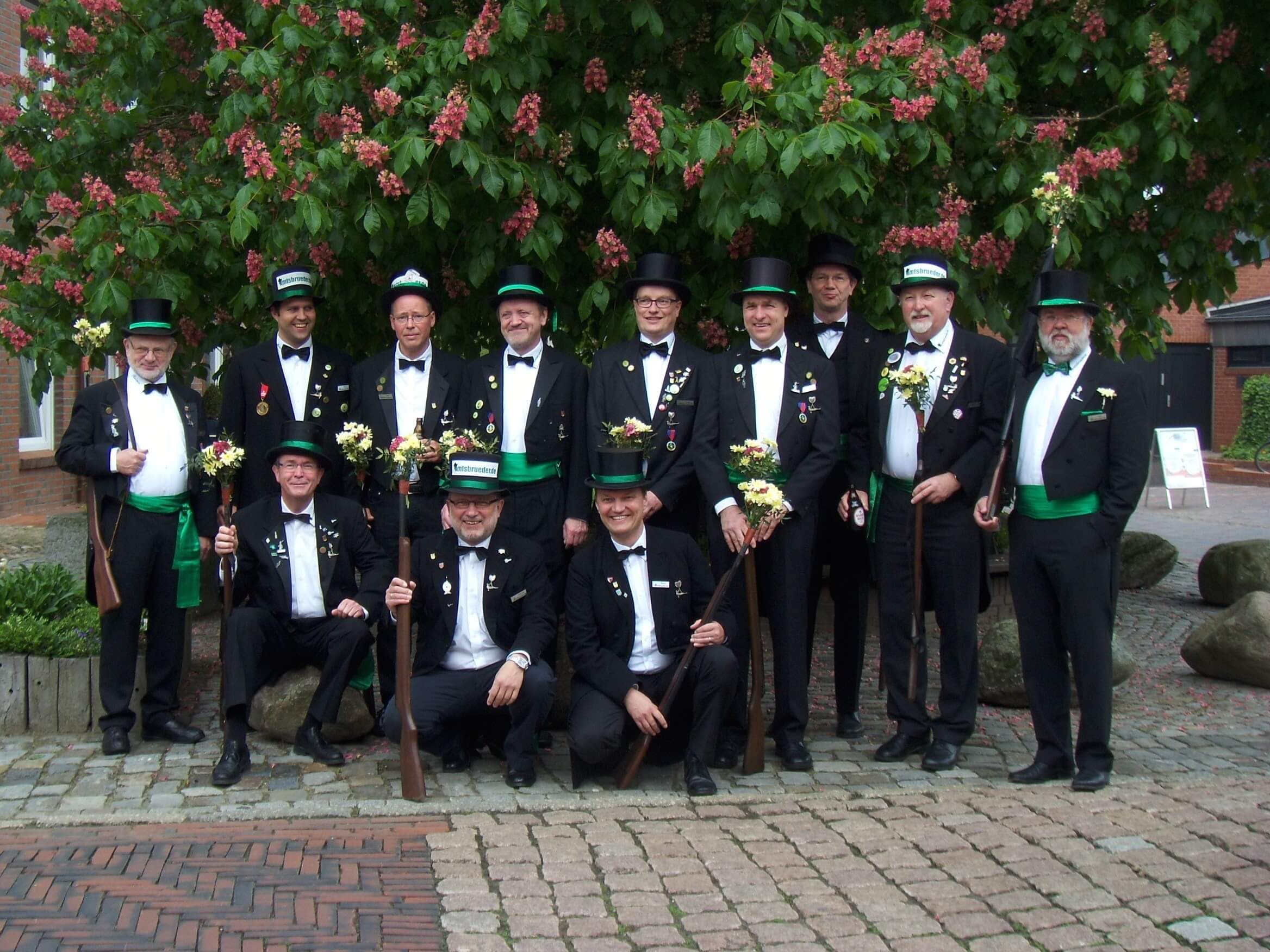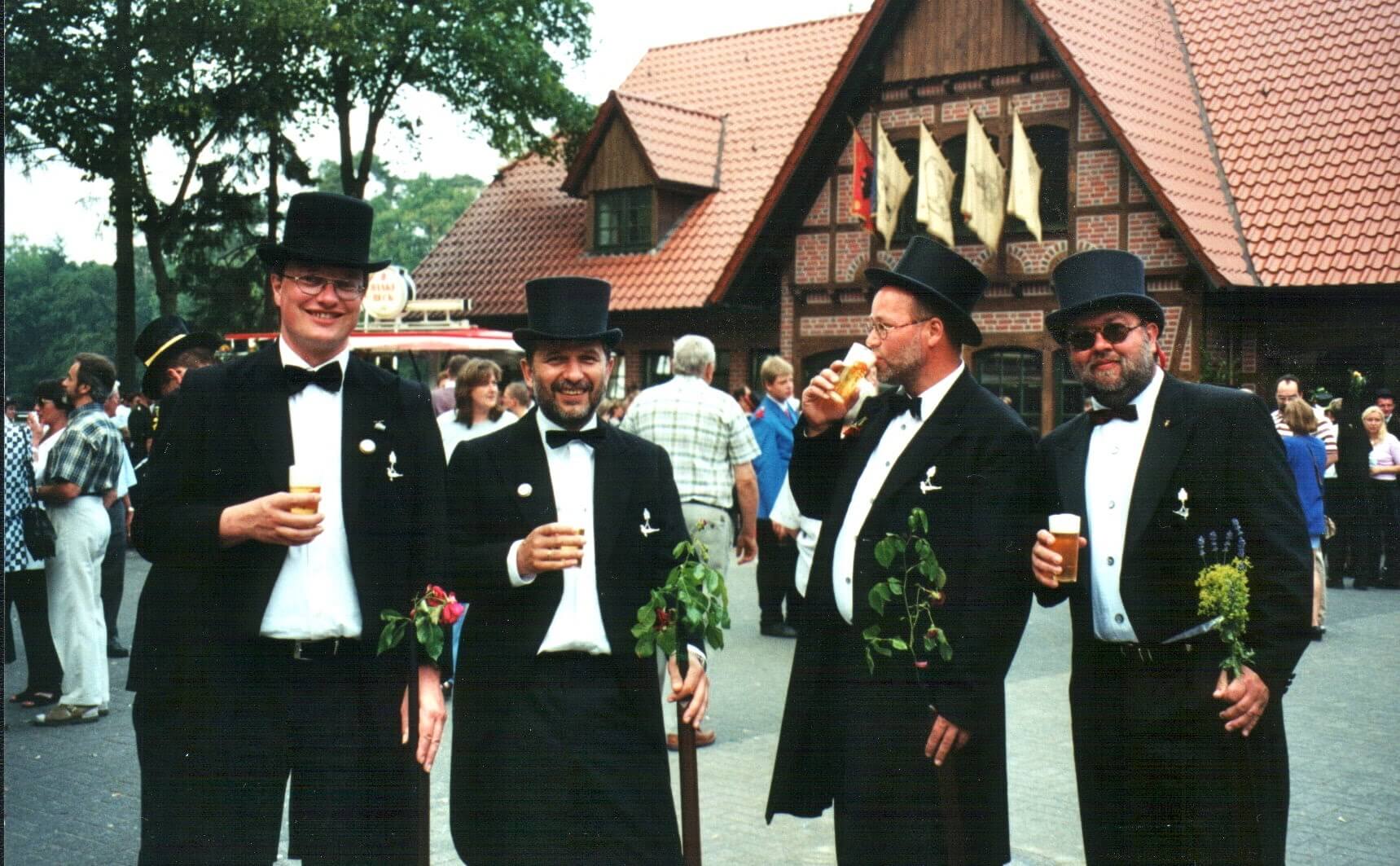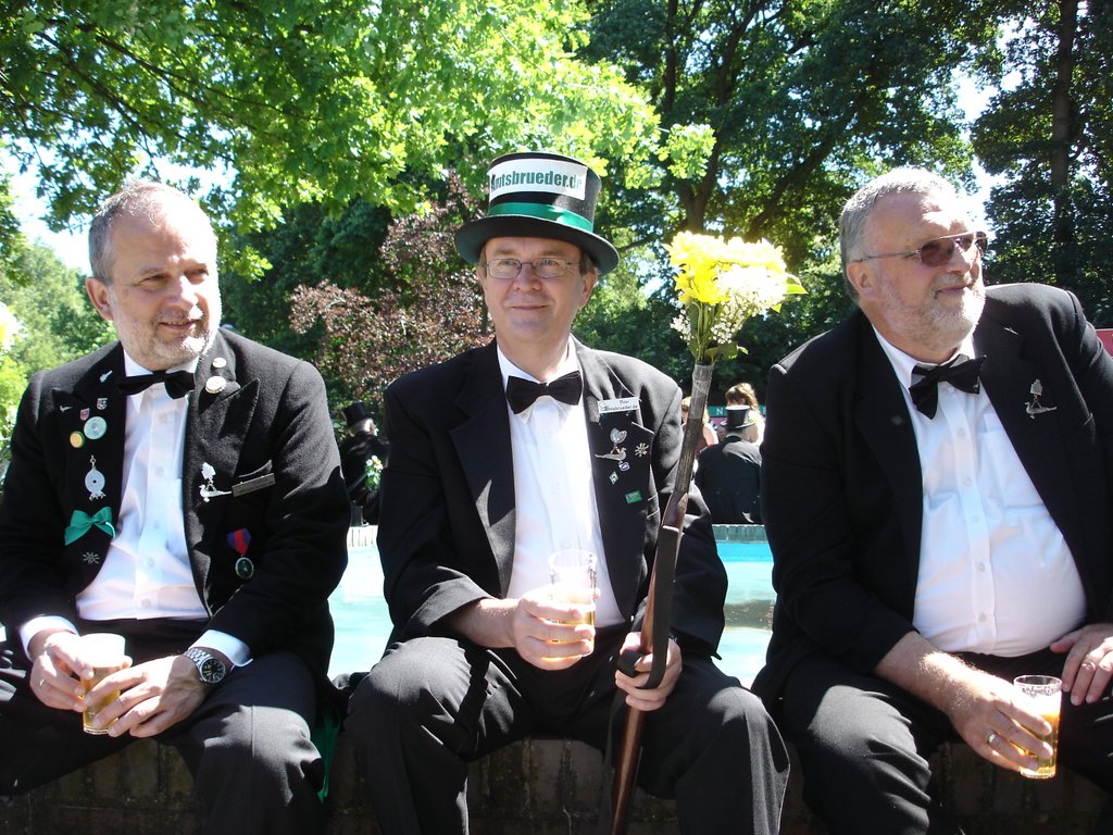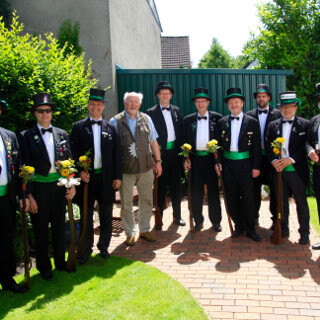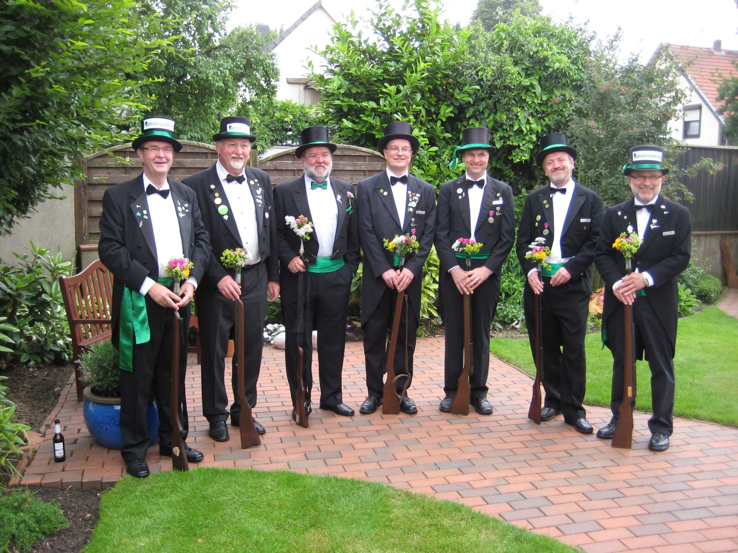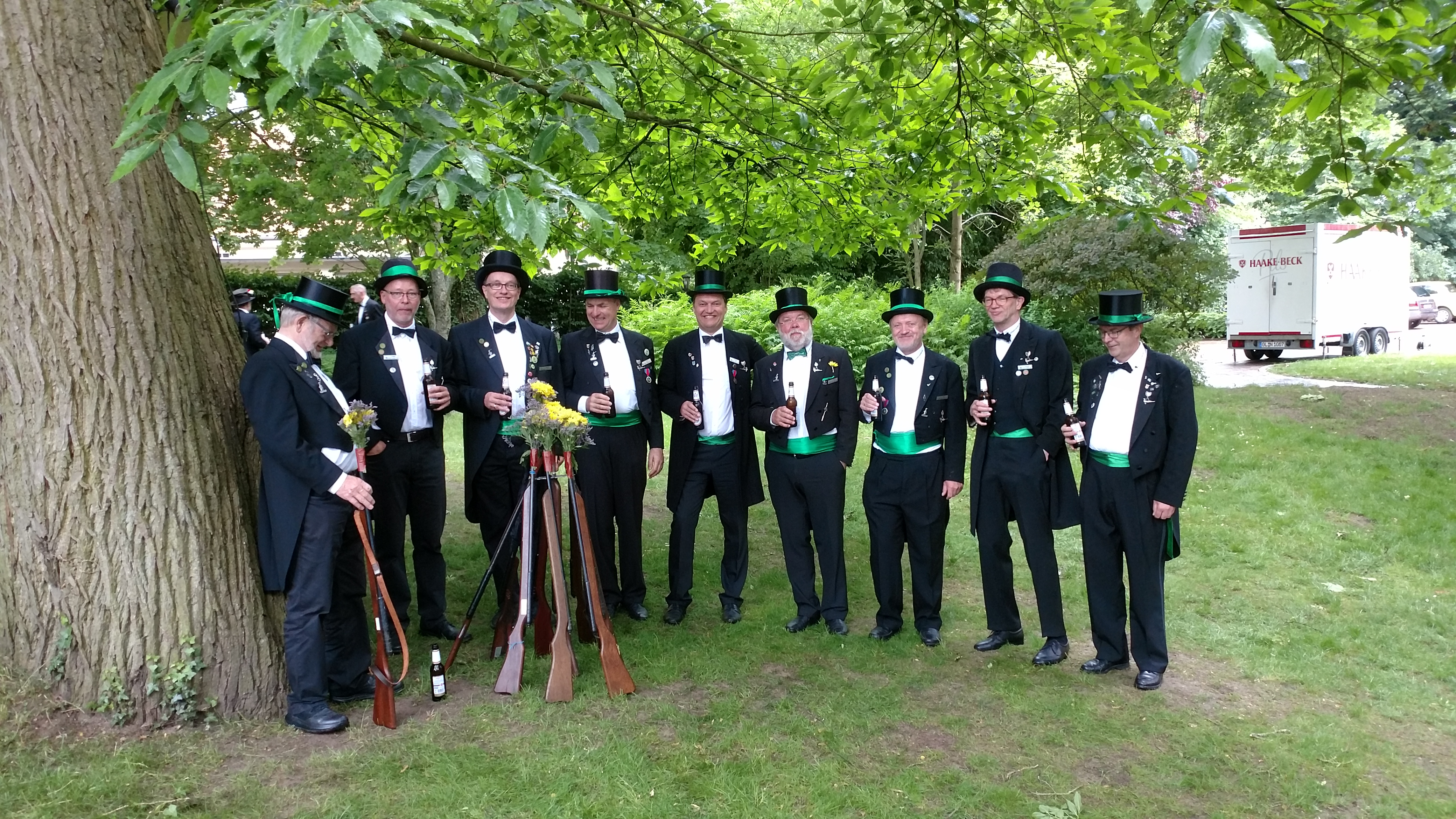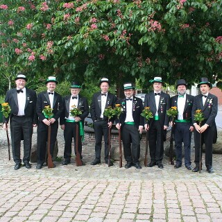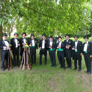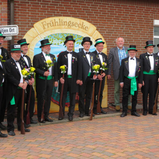 Ursprünglich sind wir eine Gruppe Gildemitglieder aus dem Kreishaus des Landkreises Oldenburg in Wildeshausen, die sich zusammengeschlossen haben, um am Pfingstdienstag mit der Kompanie auszumarschieren. Unser Erkennungszeichen ist das grüne Band am Zylinder.