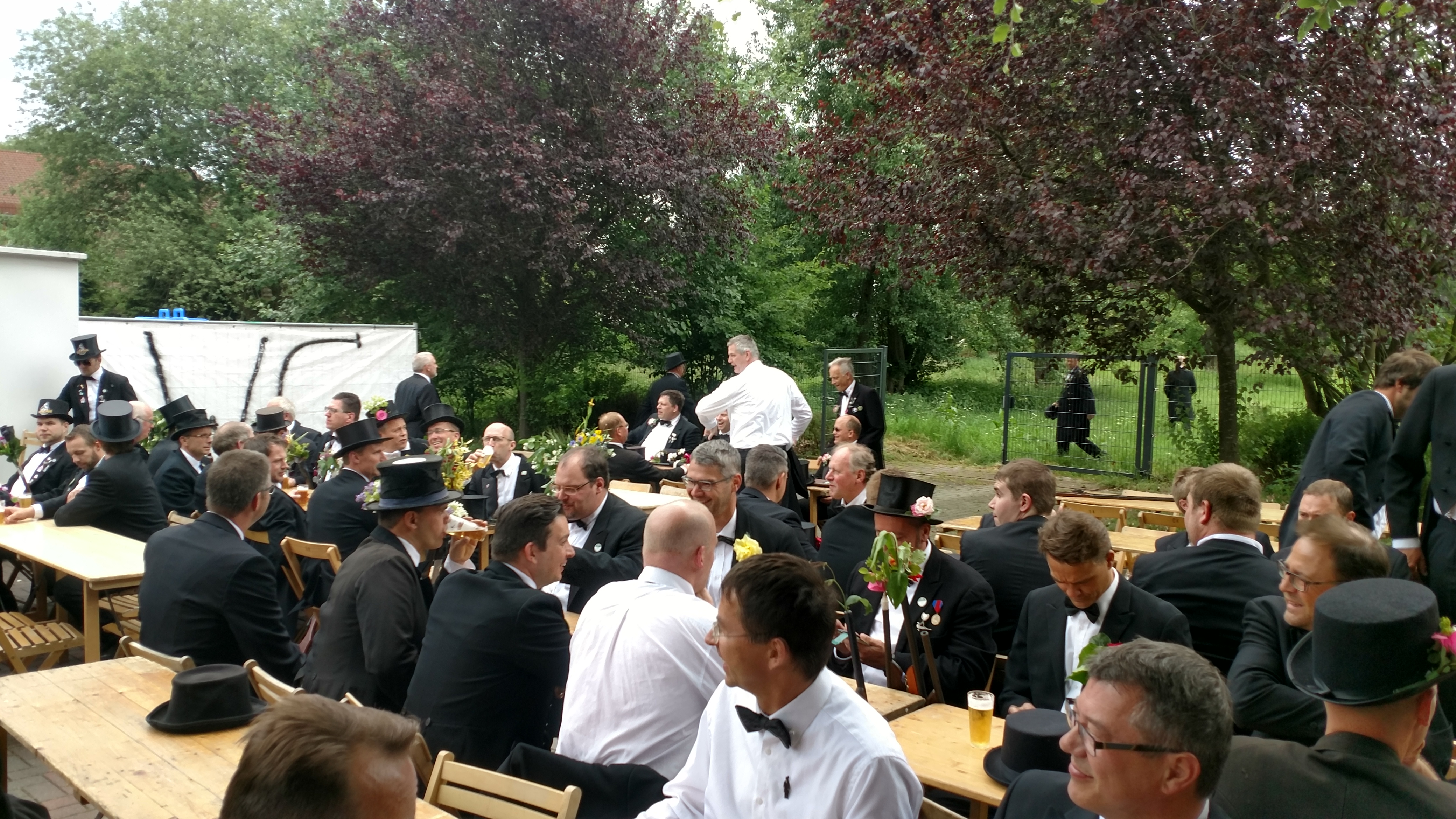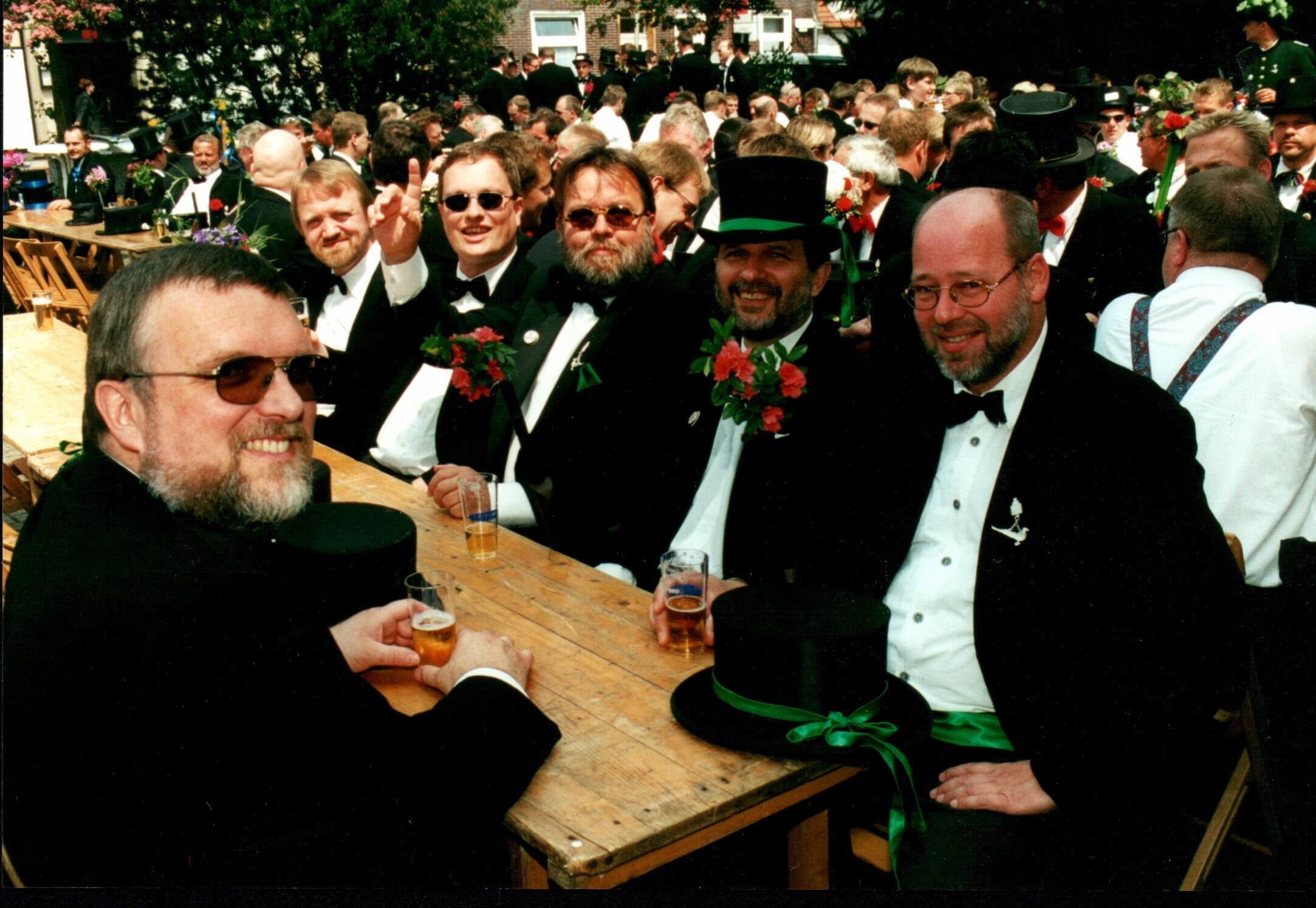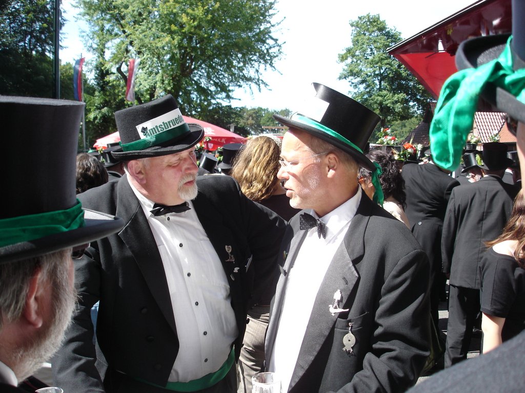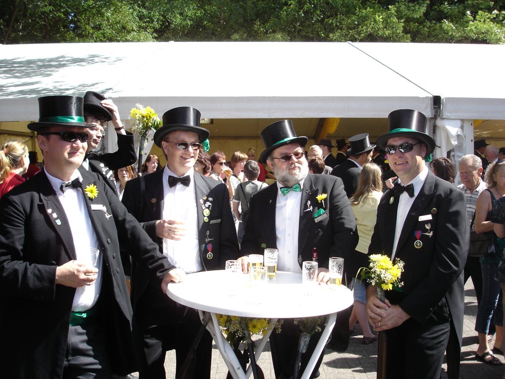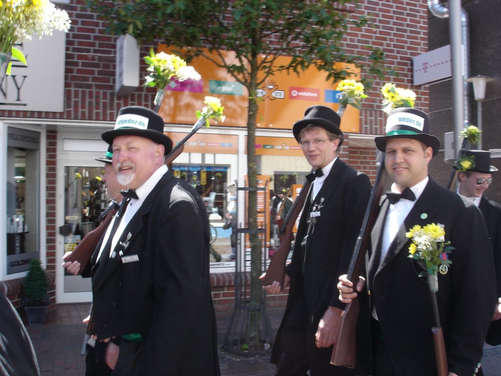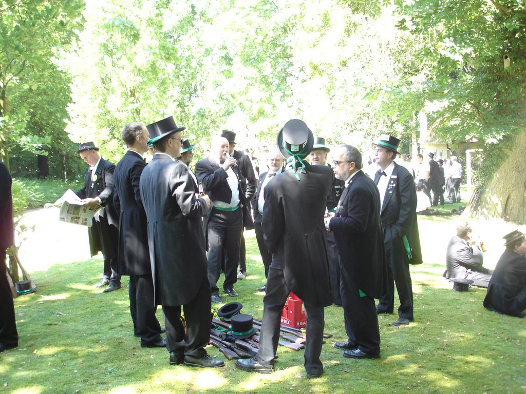 Ursprünglich sind wir eine Gruppe Gildemitglieder aus dem Kreishaus des Landkreises Oldenburg in Wildeshausen, die sich zusammengeschlossen haben, um am Pfingstdienstag mit der Kompanie auszumarschieren. Unser Erkennungszeichen ist das grüne Band am Zylinder.