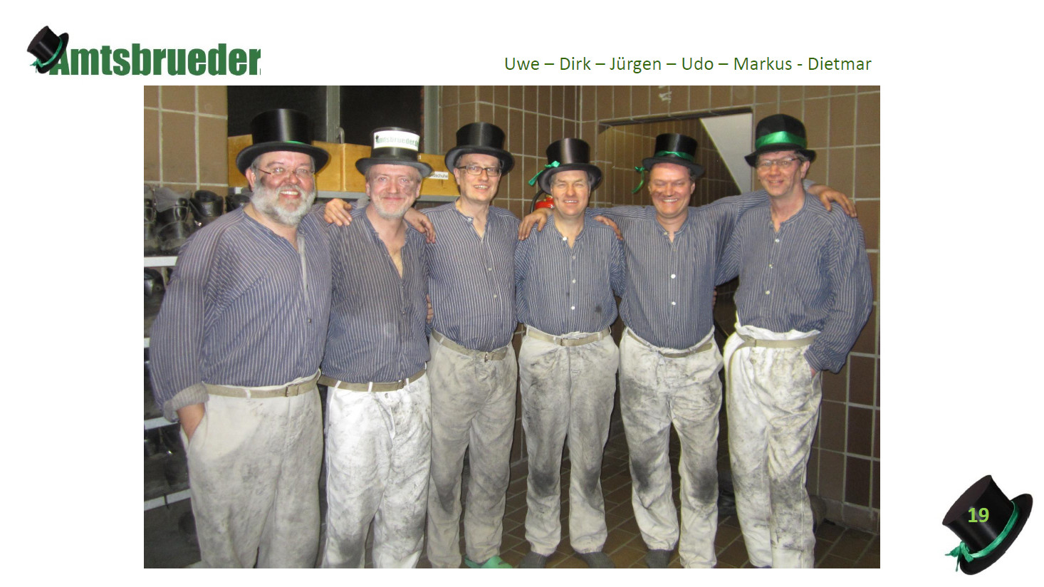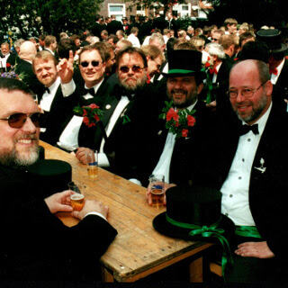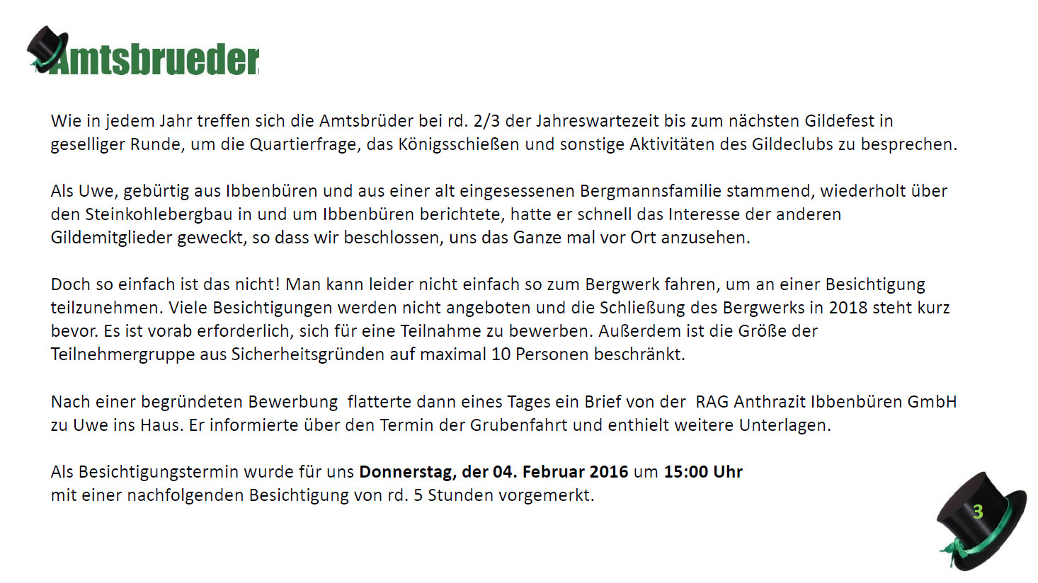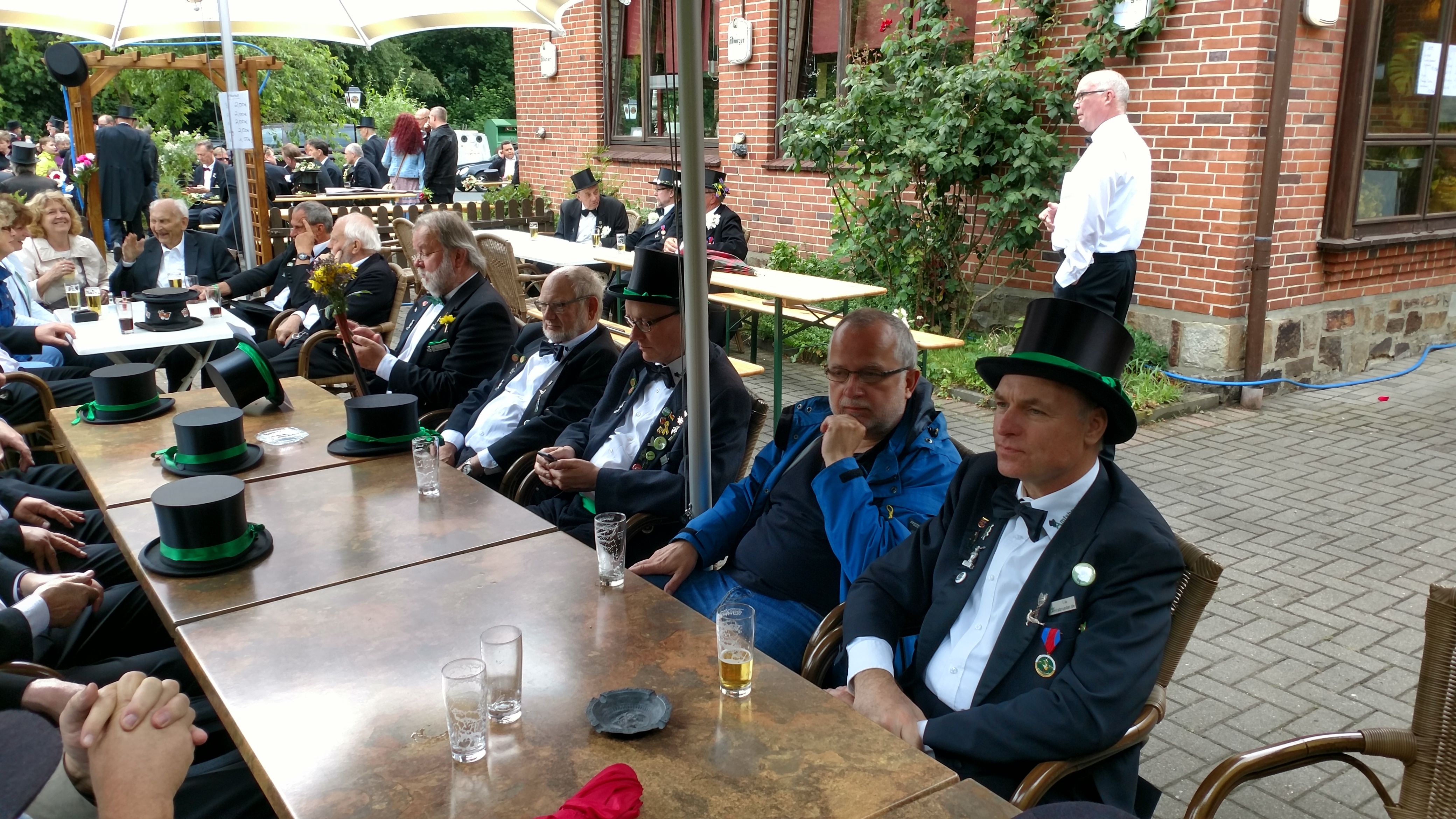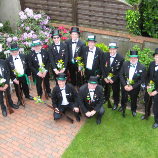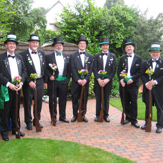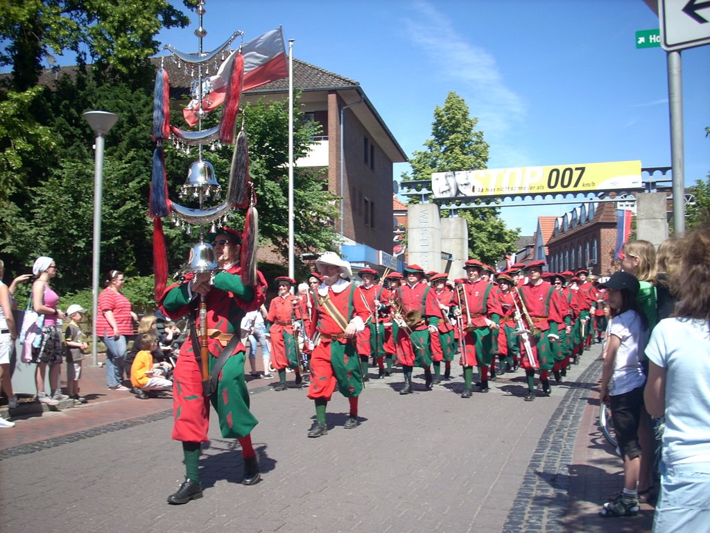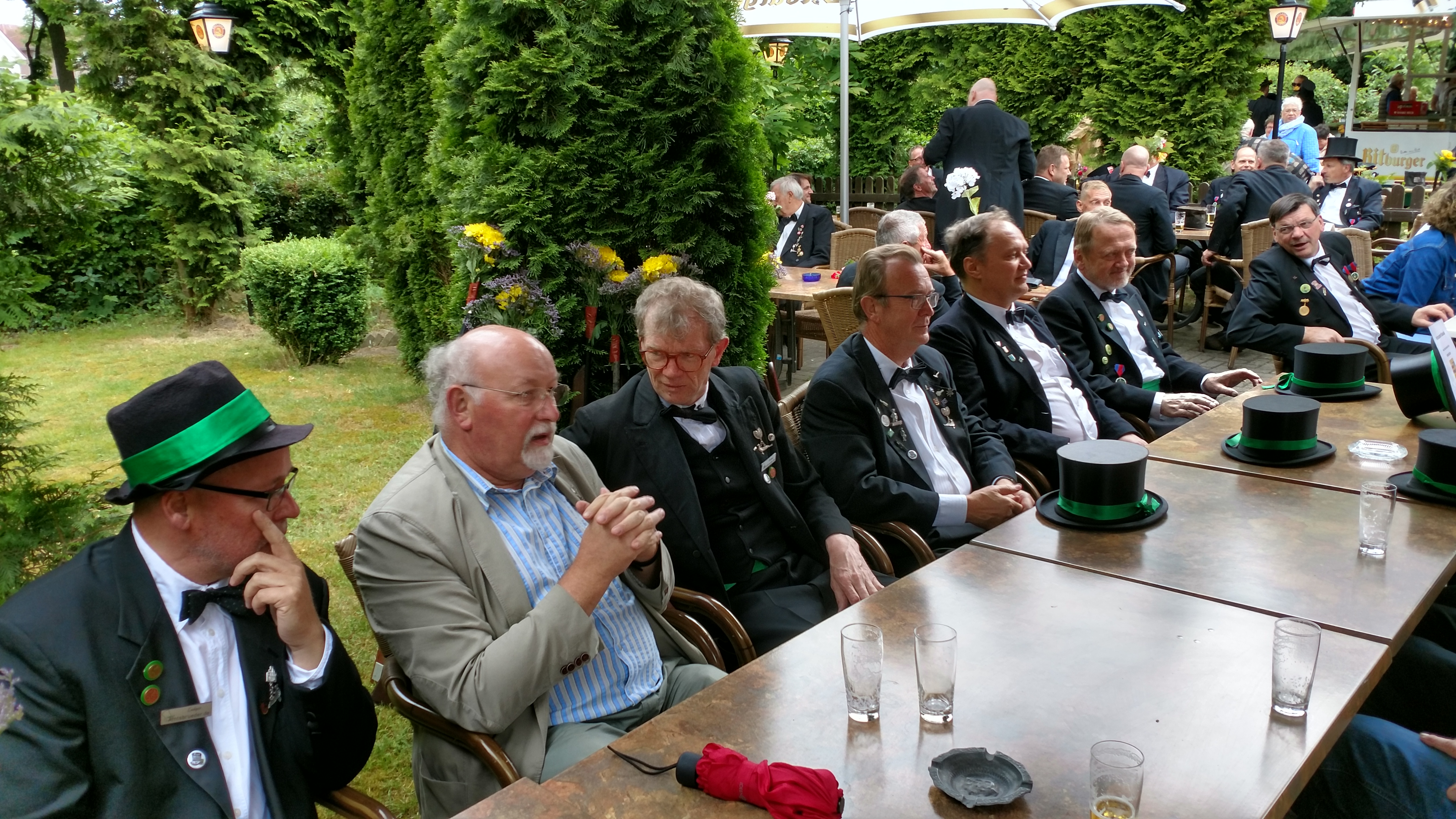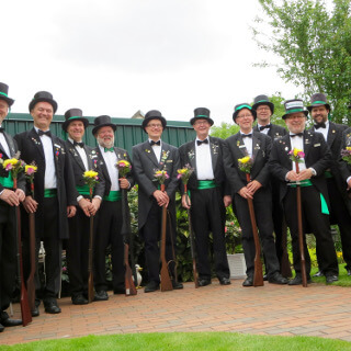 Ursprünglich sind wir eine Gruppe Gildemitglieder aus dem Kreishaus des Landkreises Oldenburg in Wildeshausen, die sich zusammengeschlossen haben, um am Pfingstdienstag mit der Kompanie auszumarschieren. Unser Erkennungszeichen ist das grüne Band am Zylinder.