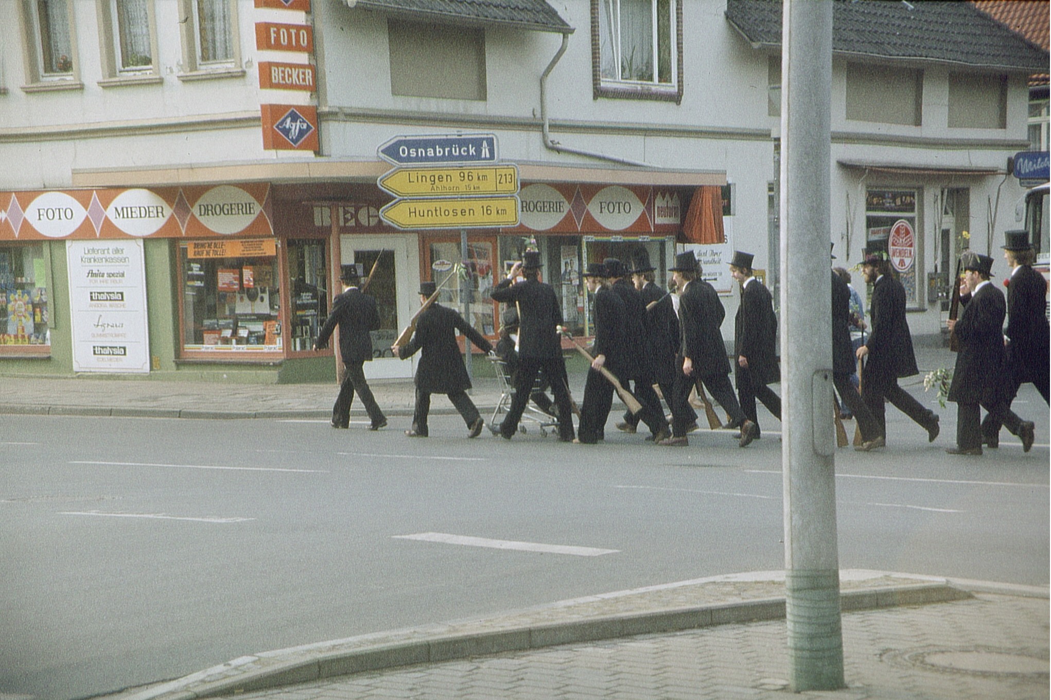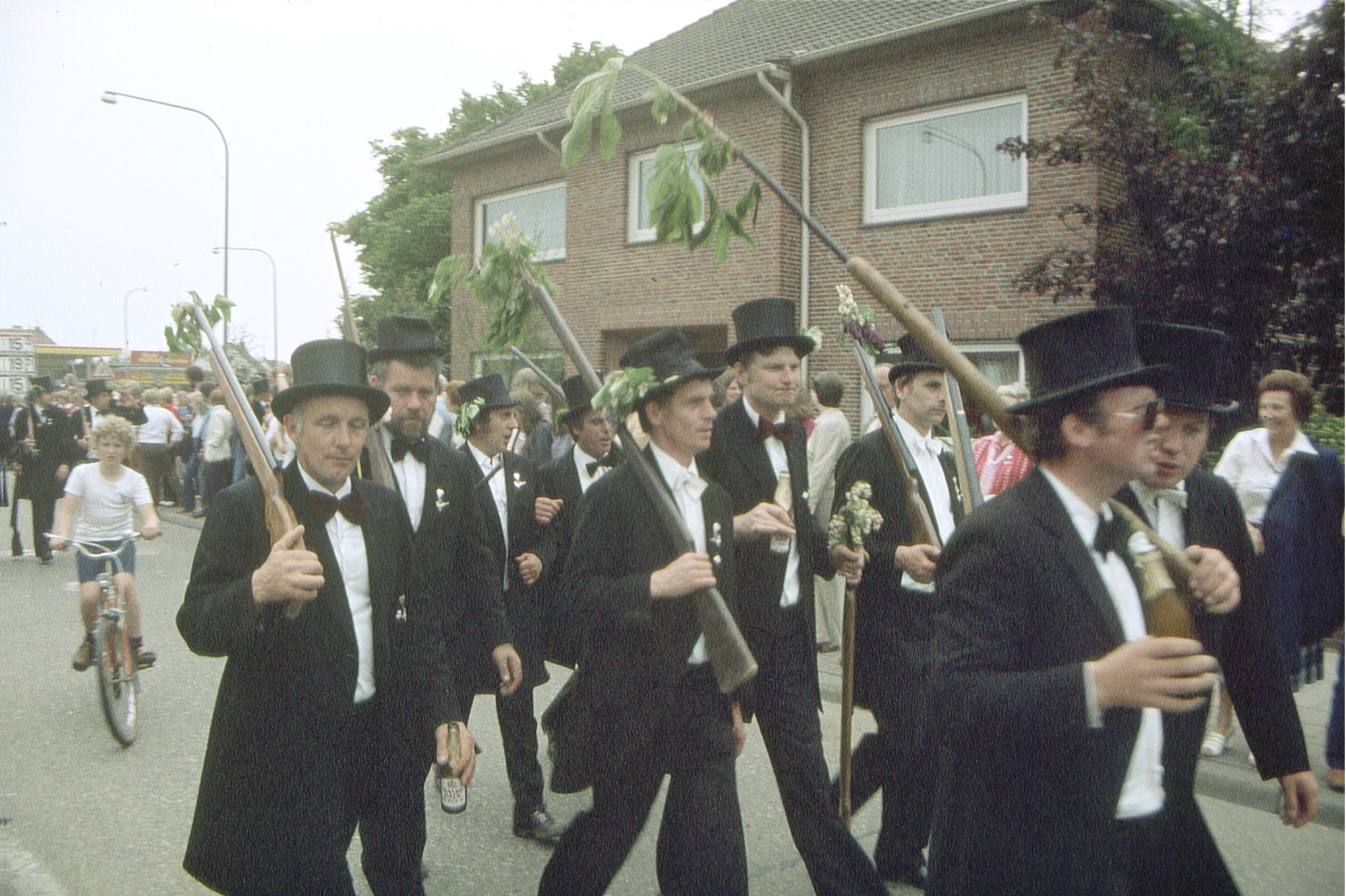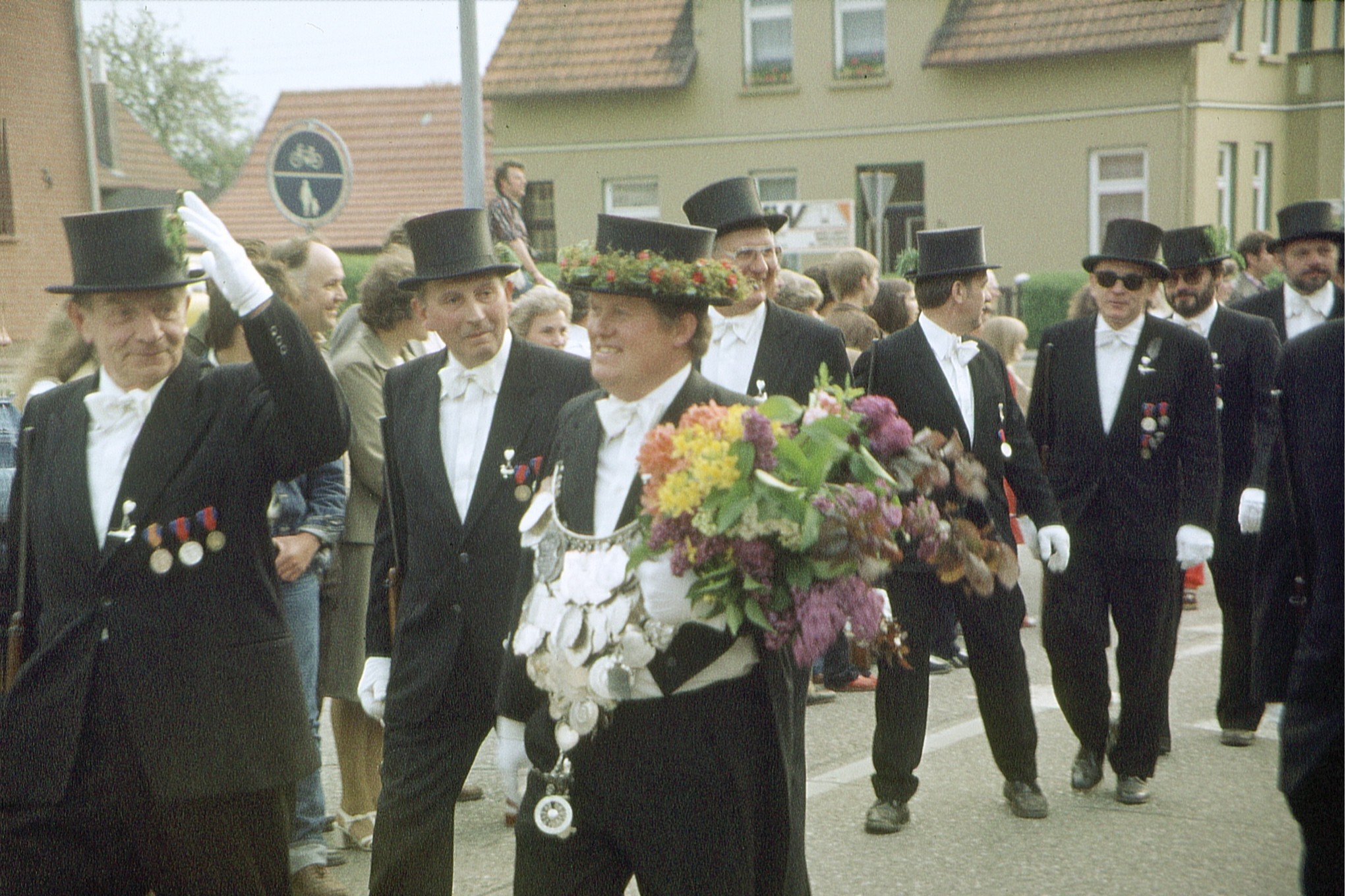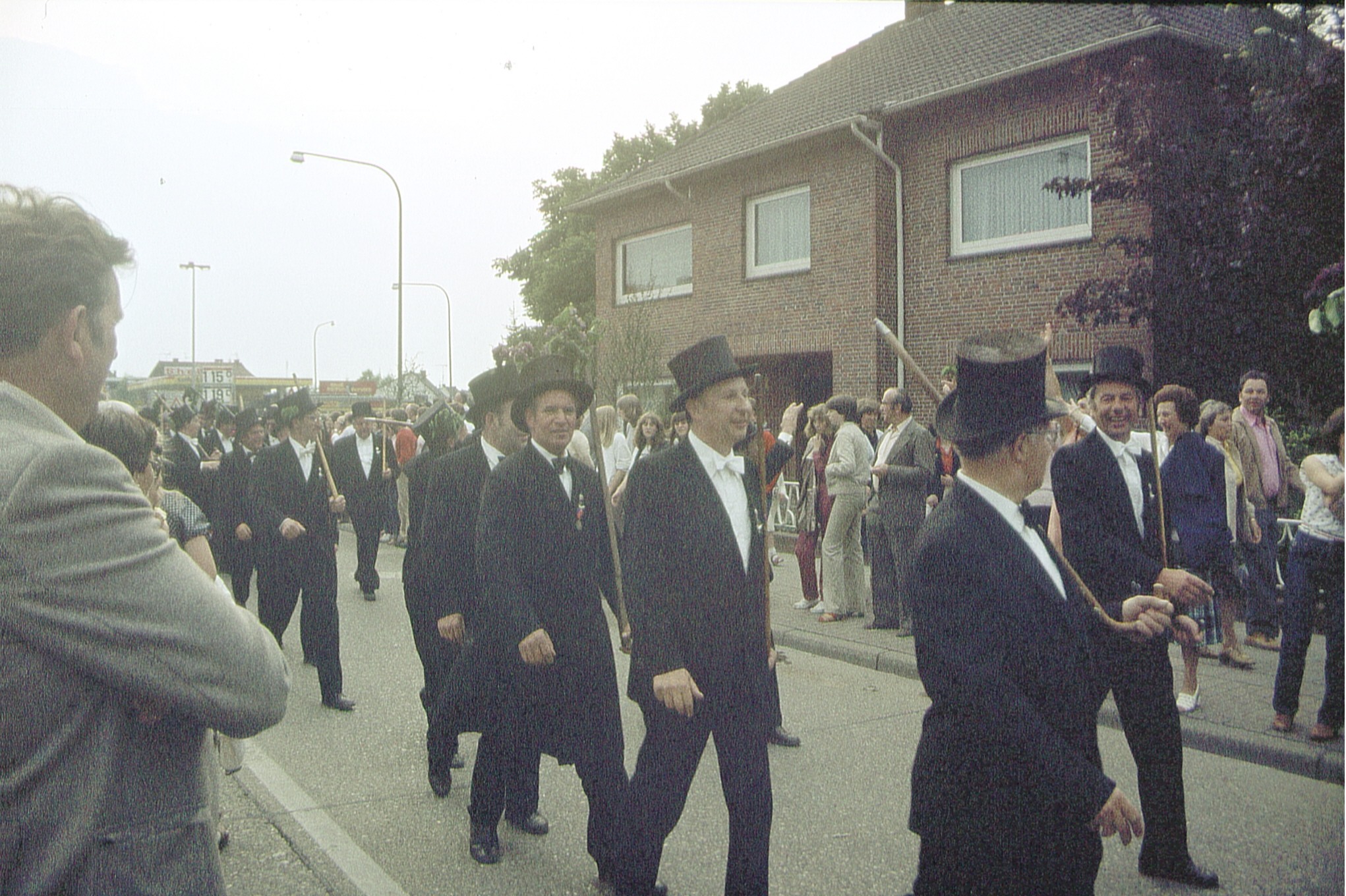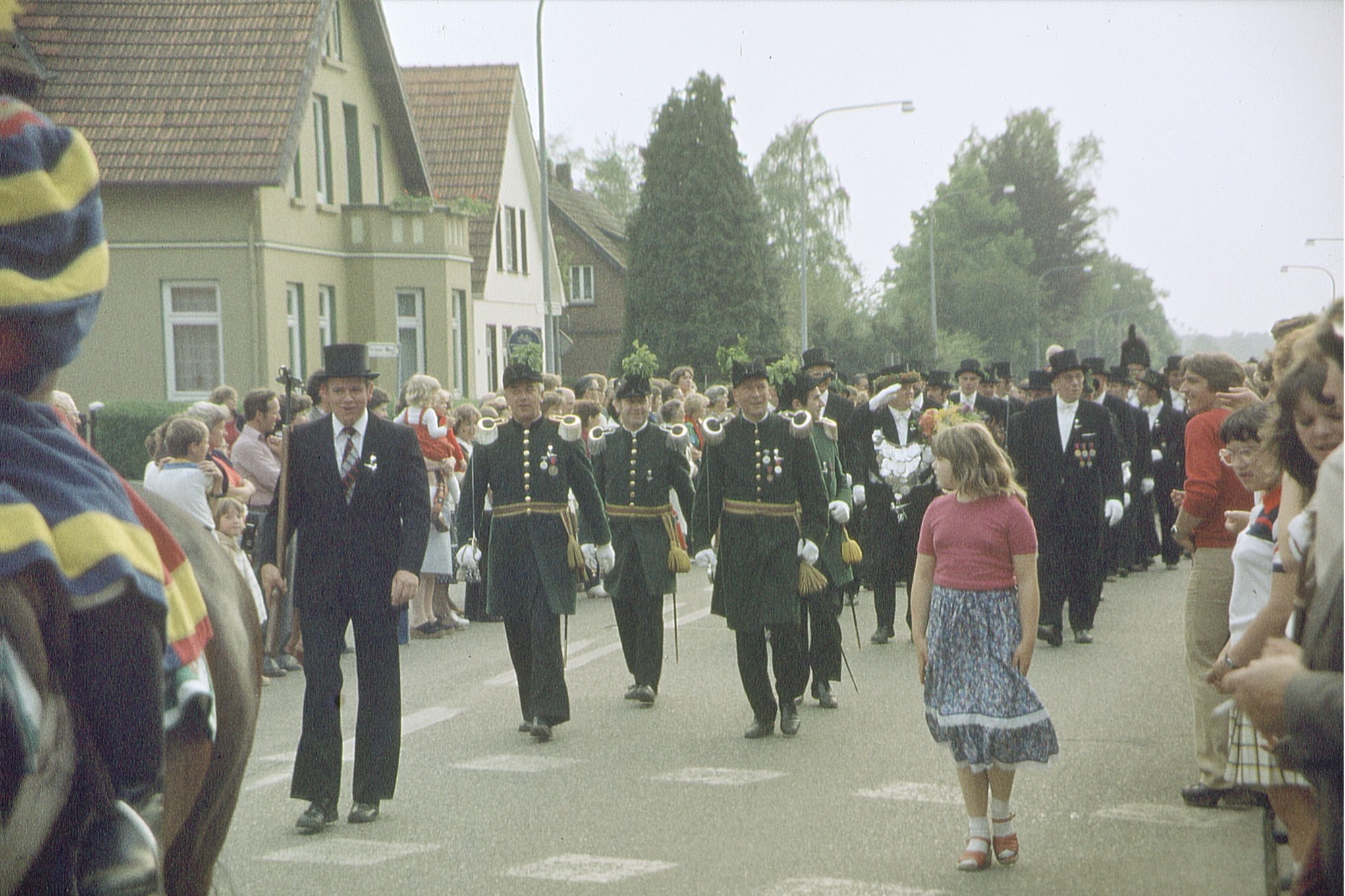 Ursprünglich sind wir eine Gruppe Gildemitglieder aus dem Kreishaus des Landkreises Oldenburg in Wildeshausen, die sich zusammengeschlossen haben, um am Pfingstdienstag mit der Kompanie auszumarschieren. Unser Erkennungszeichen ist das grüne Band am Zylinder.