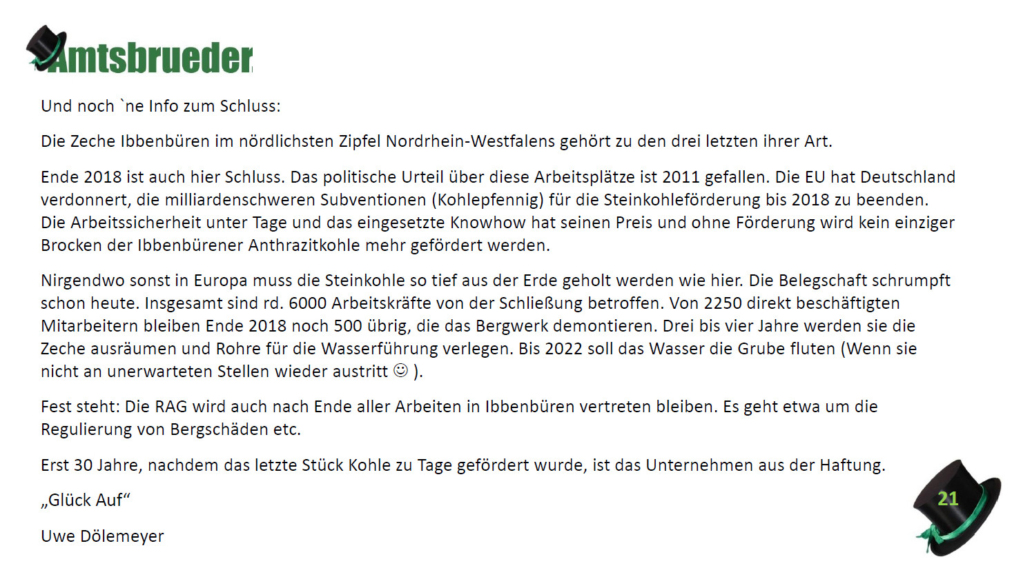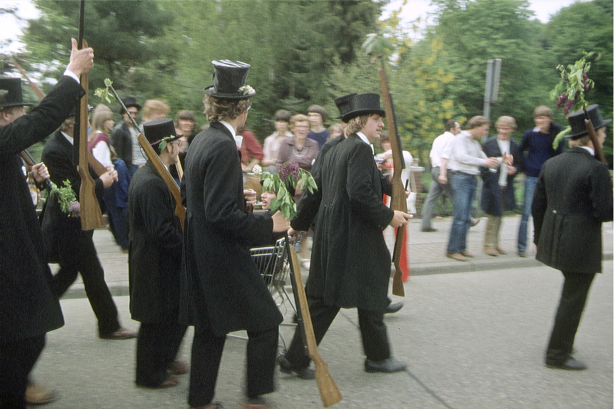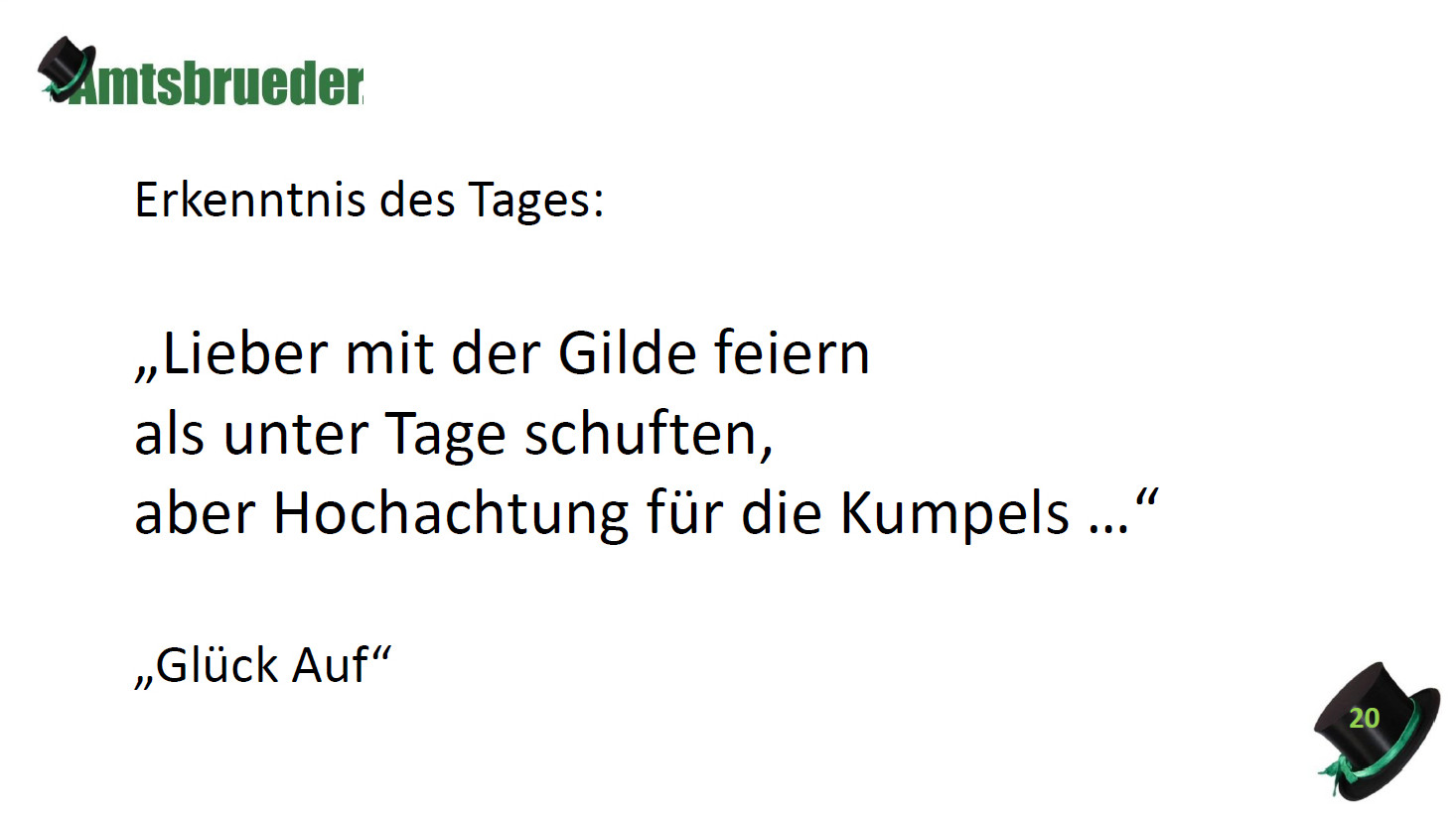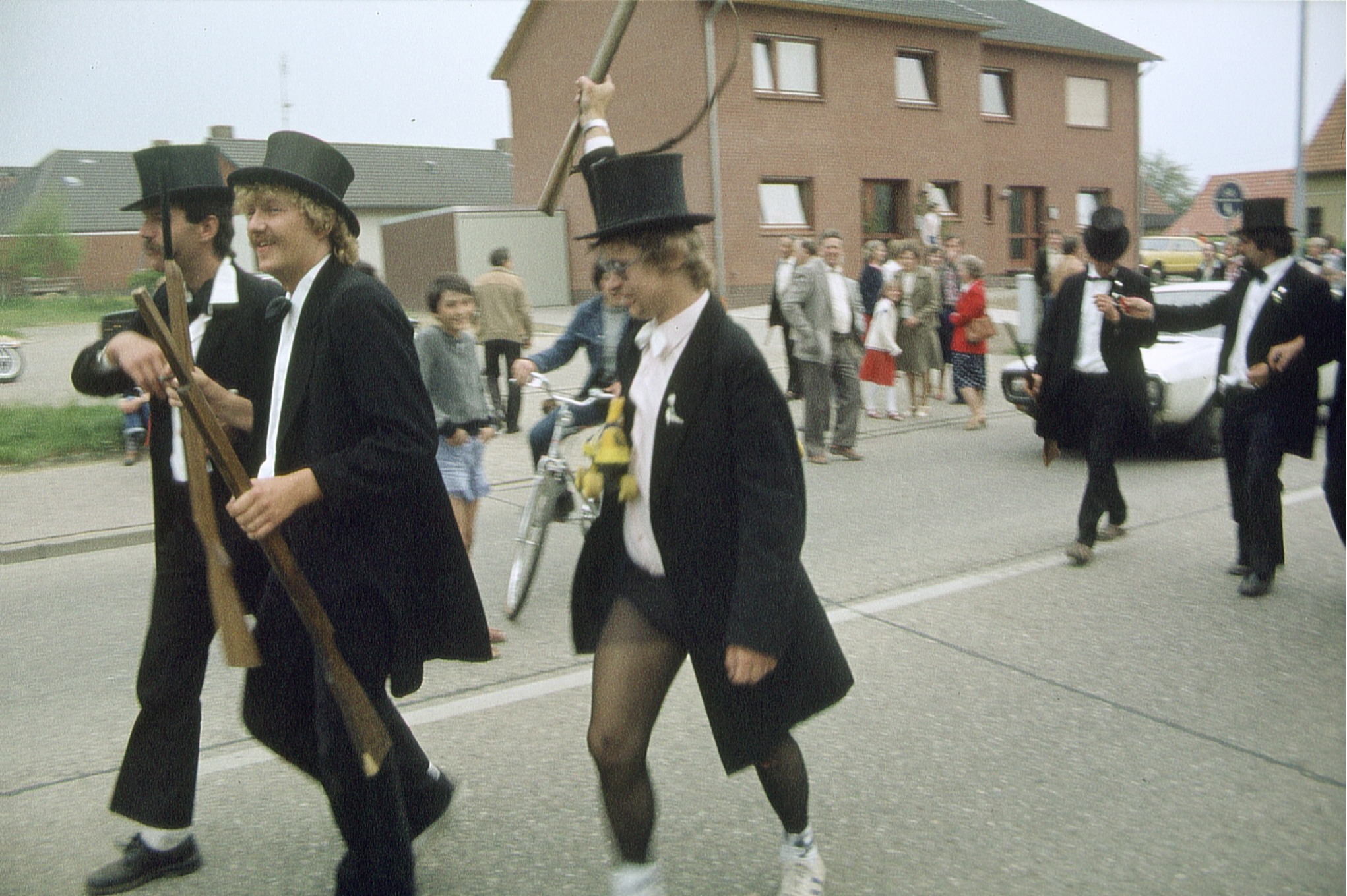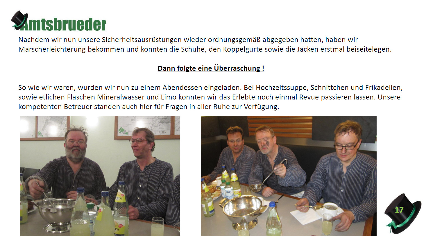 Ursprünglich sind wir eine Gruppe Gildemitglieder aus dem Kreishaus des Landkreises Oldenburg in Wildeshausen, die sich zusammengeschlossen haben, um am Pfingstdienstag mit der Kompanie auszumarschieren. Unser Erkennungszeichen ist das grüne Band am Zylinder.