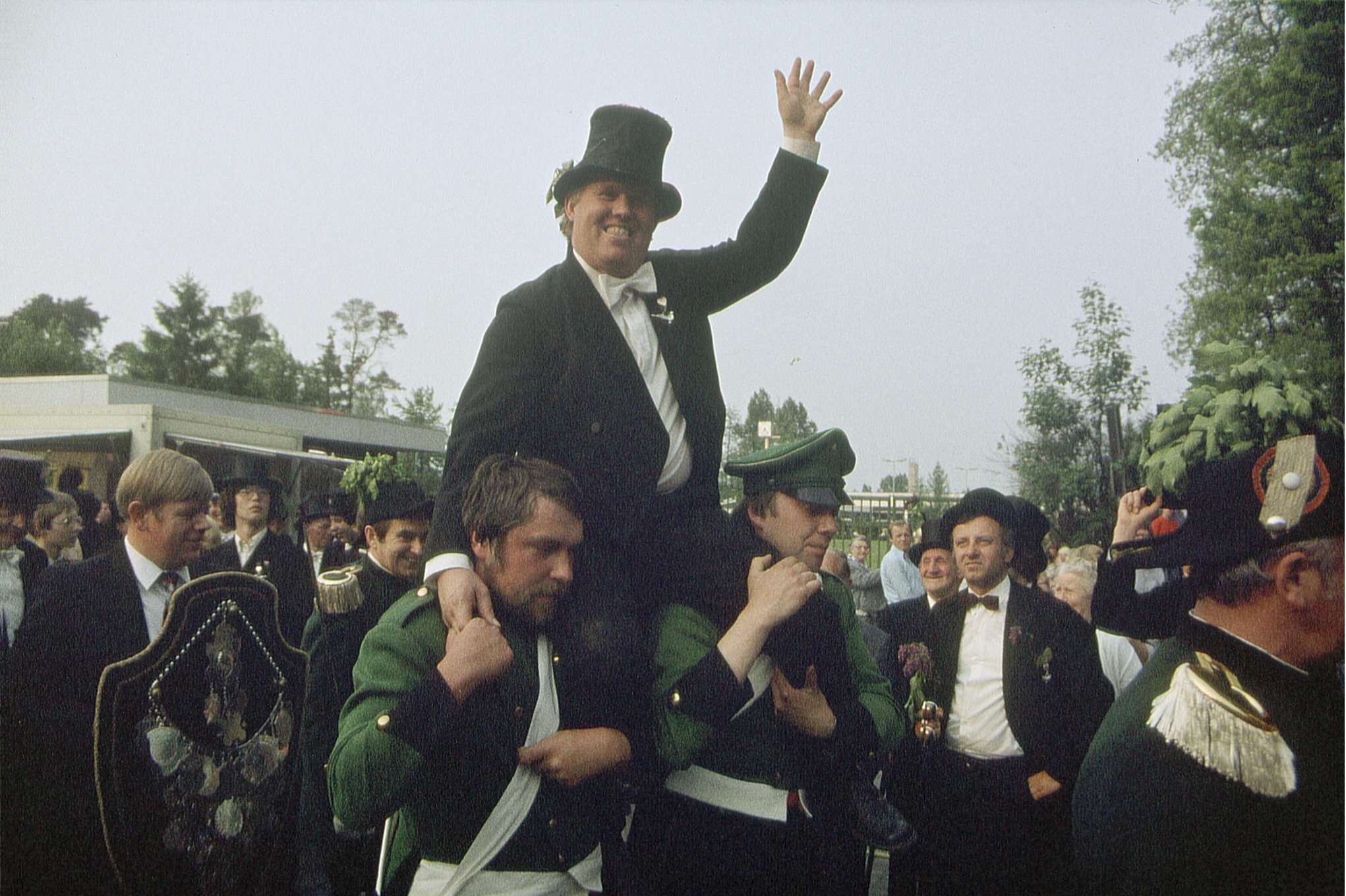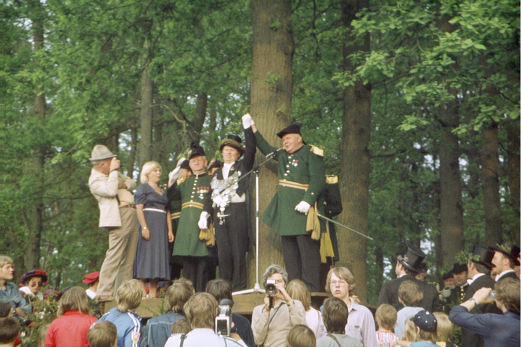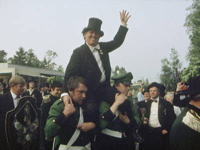 135 neue Rekruten vom General der Schützengilde vereidigt. Das Wetter war zunächst trocken, dann aber regnete es und es war für die Jahreszeit zu kühl. Christian Harting neuer Schaffer und Jörg Schilling neuer Gildekönig.