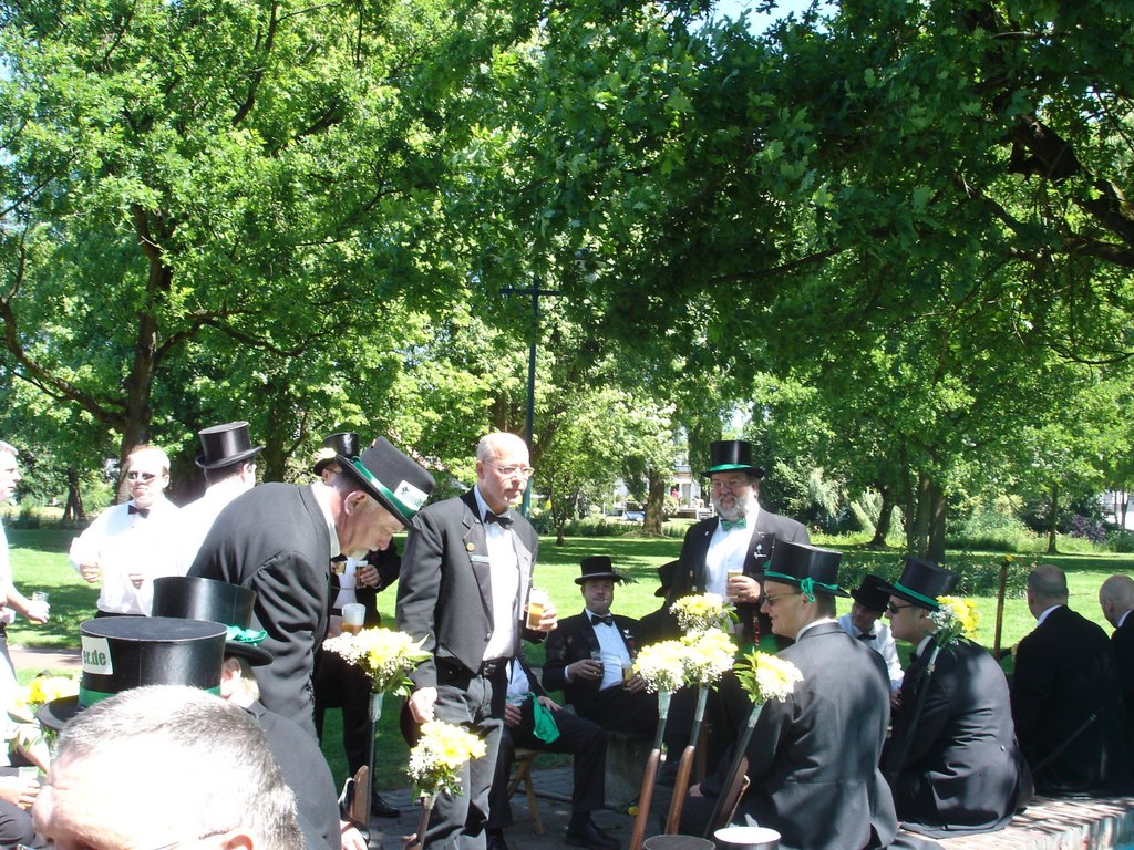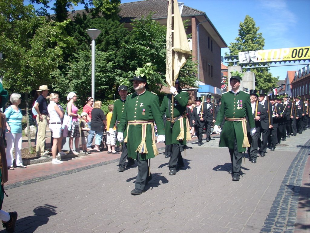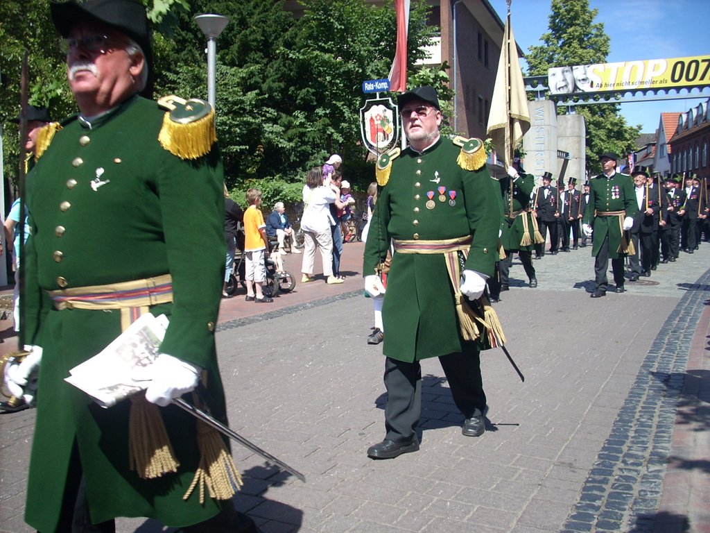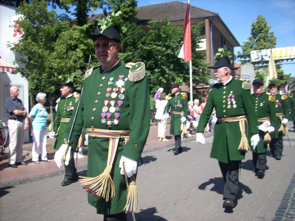 Mit Temperaturen von höchstens 17° Grad war es nur mäßig warm. Auf der Herrlichkeit hatten sich am Vormittag 83 neue Rekruten der Gilde angeschlossen. Heinrich Nuxoll übernahm als neuer Oberst das Amt von Heinrich August Schütte. Frank Gebken wurde neuer König und Marco Tschöpe neuer Schaffer.