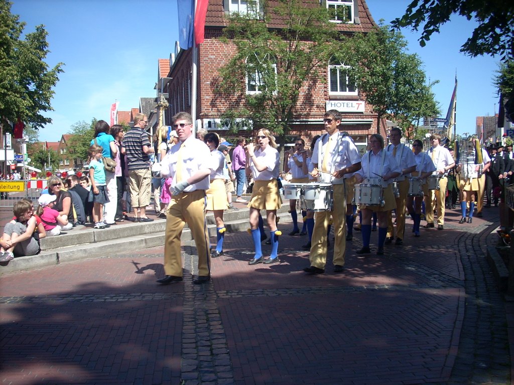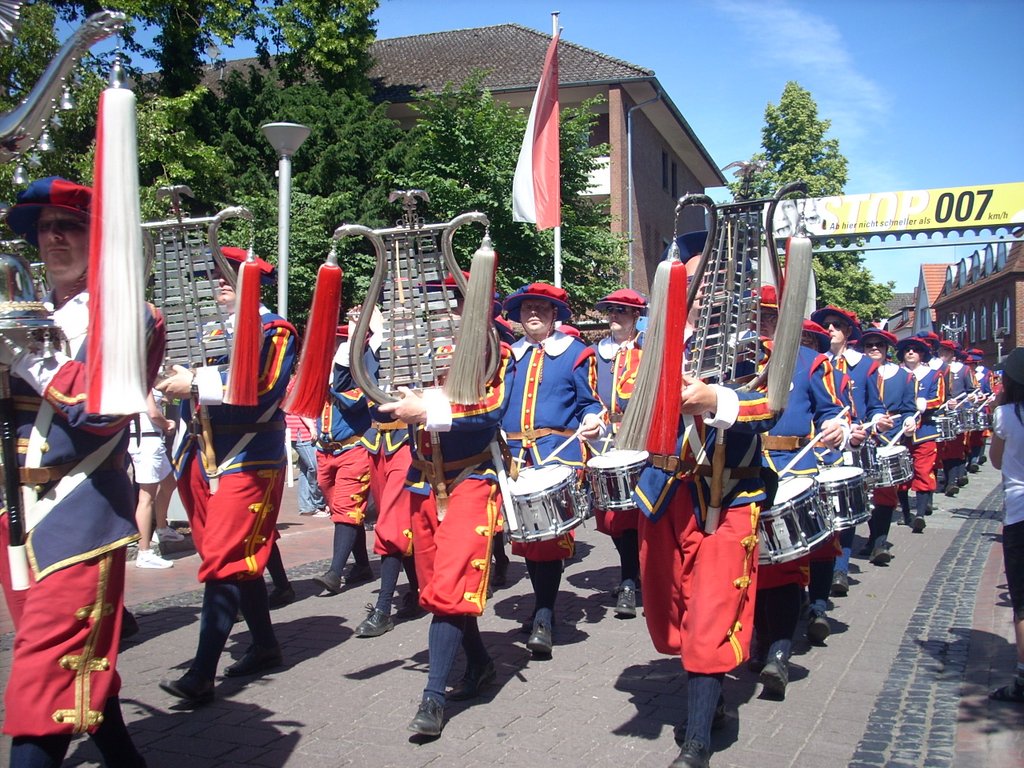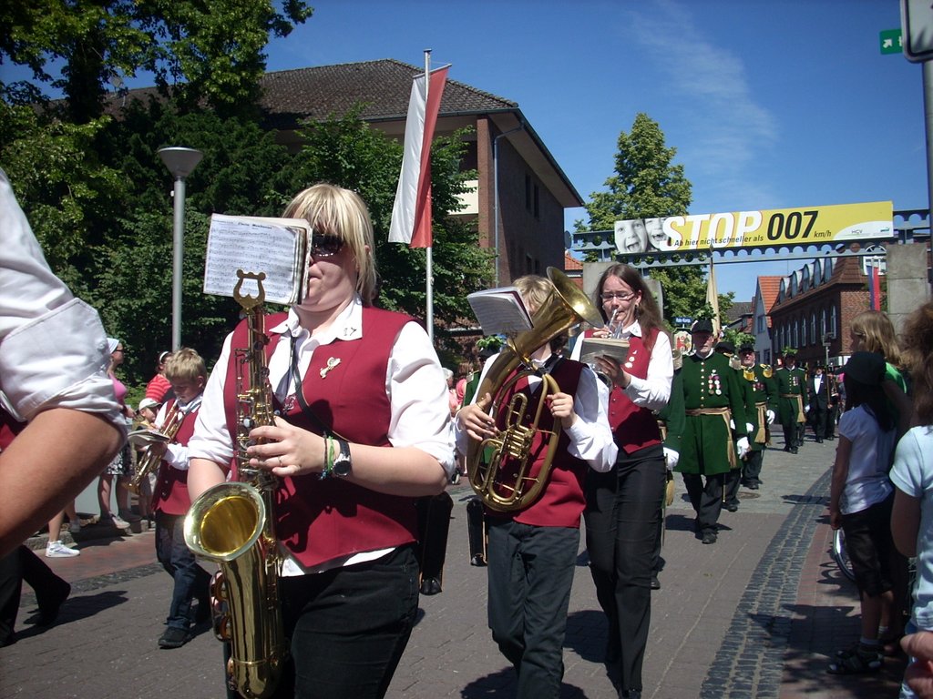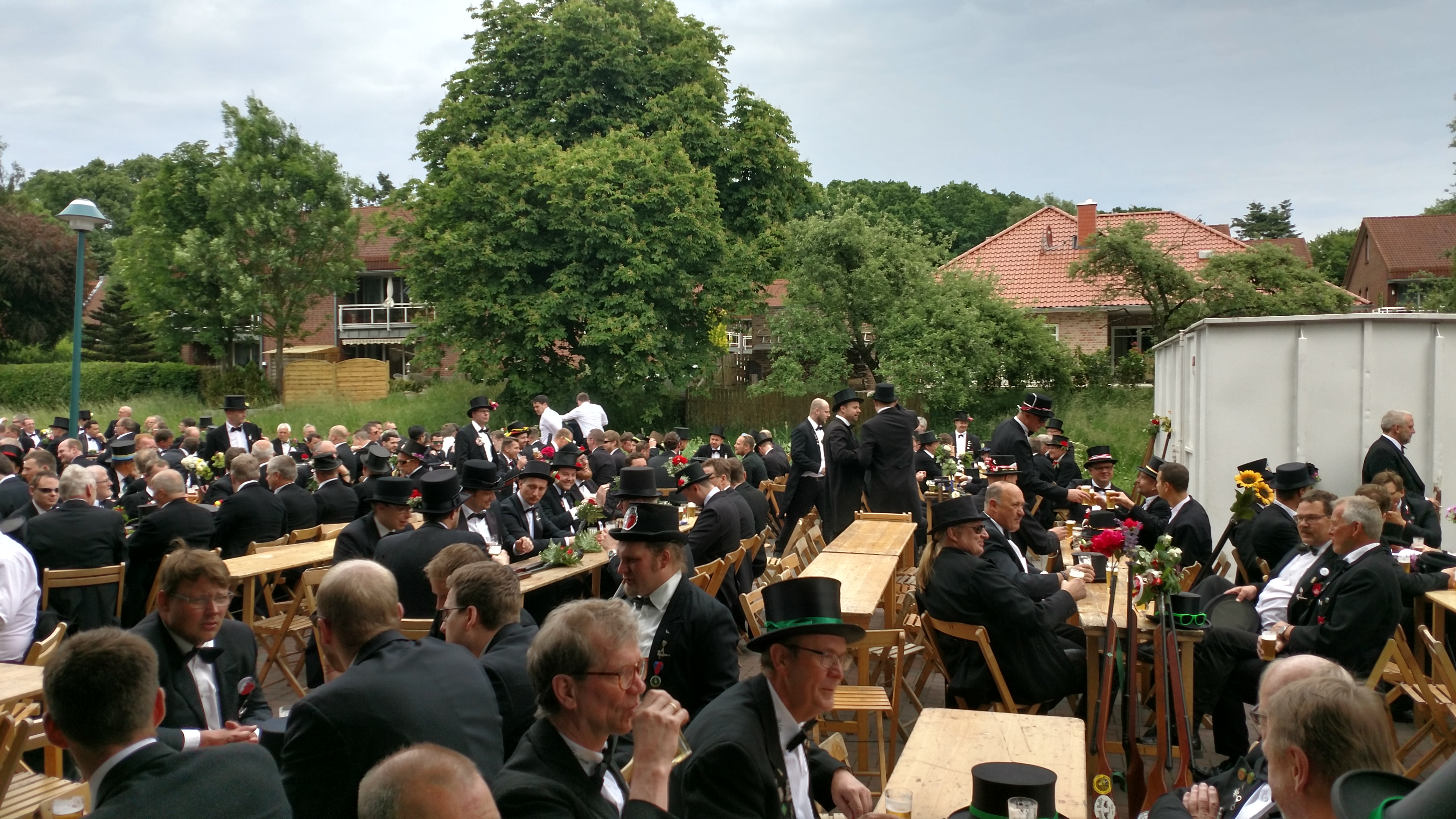 Mit Temperaturen von höchstens 17° Grad war es nur mäßig warm. Auf der Herrlichkeit hatten sich am Vormittag 83 neue Rekruten der Gilde angeschlossen. Heinrich Nuxoll übernahm als neuer Oberst das Amt von Heinrich August Schütte. Frank Gebken wurde neuer König und Marco Tschöpe neuer Schaffer.