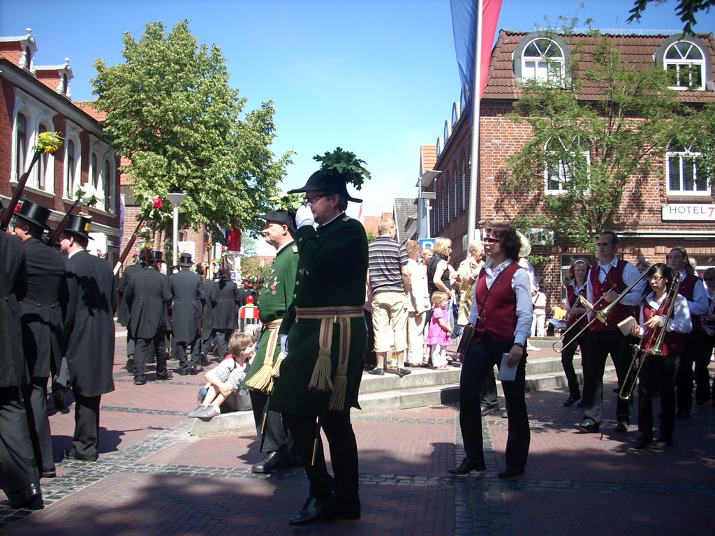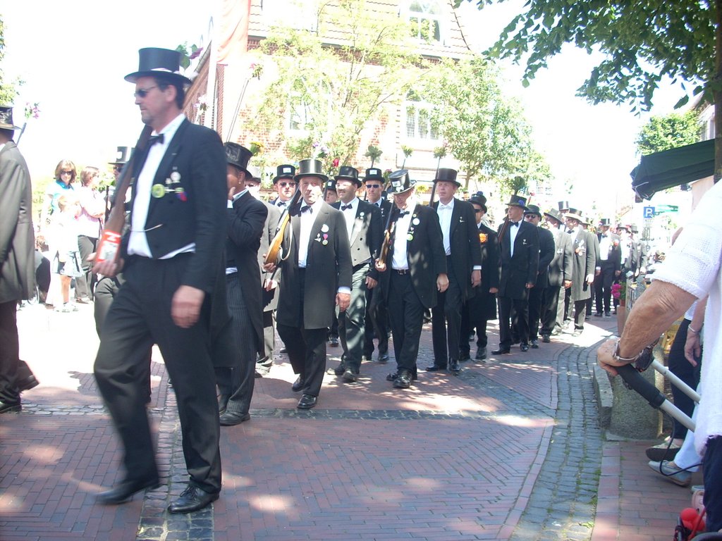 Ein gut gelauntes Riesen-Regiment mit 2773 Schwarzbefrackten, Musikern und Offizieren marschierte bei traumhaftem Wetter (24° und eine erfrischende Brise) zum Krandel. Die Kompanie Westertor stellte mit 876 Männern die stärkste Kompanie (darin enthalten: 12 Amtsbrüder). In die Gilde neu eingetreten waren 99 Rekruten. Volker Böttjer neuer König und Jörn Ahlers neuer Schaffer.