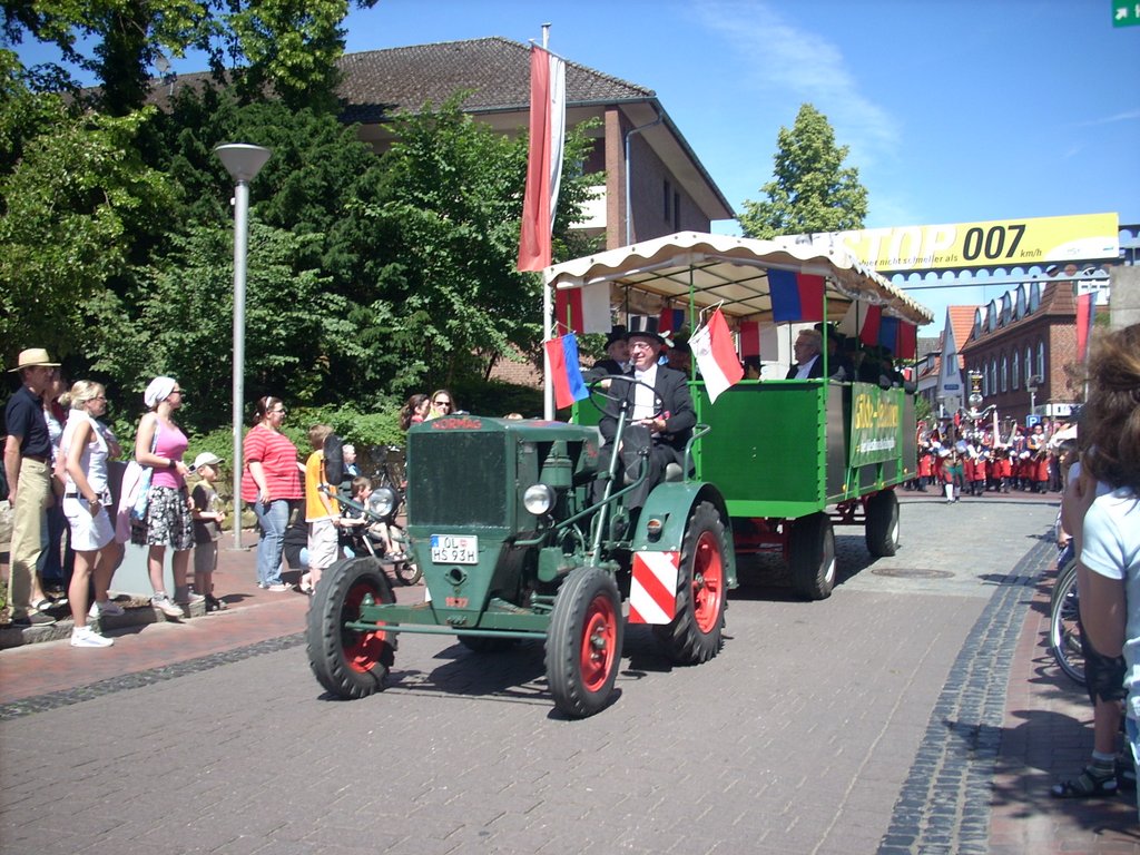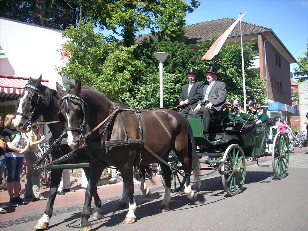 Selbst die Sonne erwischte ihren Einsatz perfekt: Punkt 15:00 Uhr riss das erste Mal am Pfingstdienstag die Wolkendecke über Wildeshausen auf. Bei angenehmen 21° und Sonnenschein machte sich eines der größten Regimenter aller Zeiten auf den Weg zum Krandel. Die Amtsbrüder waren selbstverständlich mit dabei. 93 Rekruten sind am Vormittag vom General vereidigt worden. Björn Köhler neuer König und Thomas Seyffart neuer Schaffer.