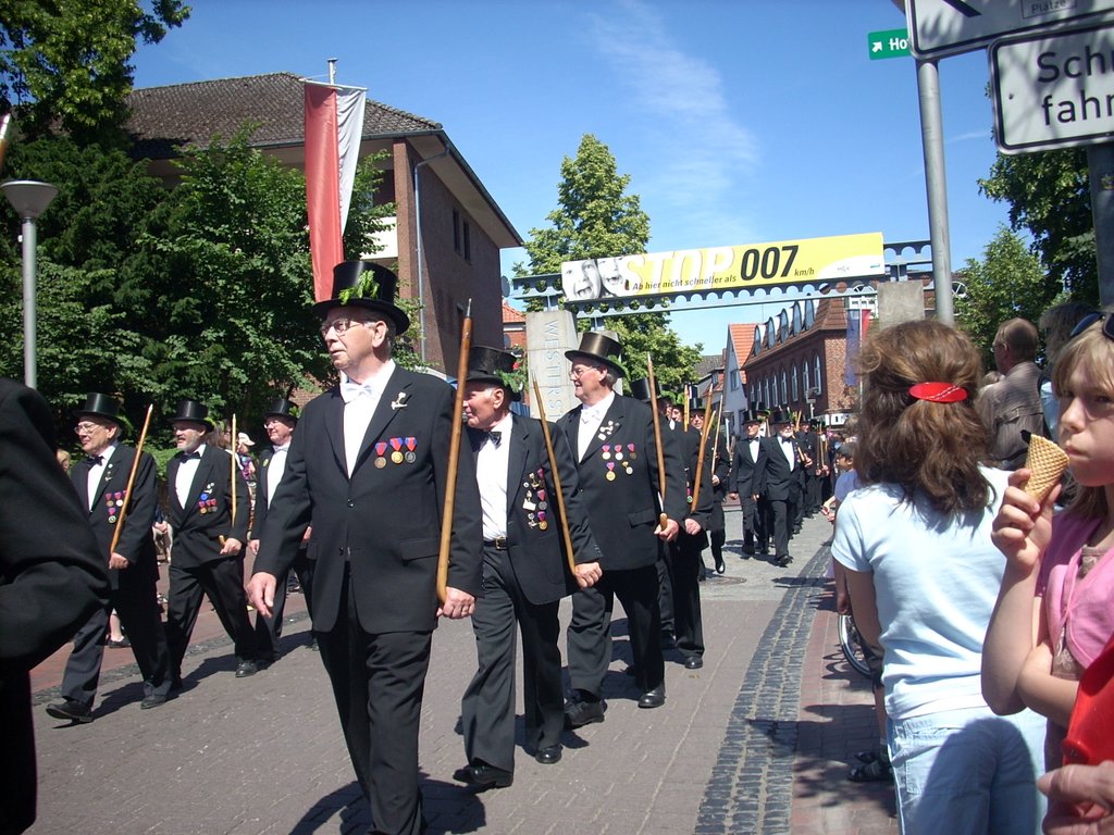 Am Dienstag marschierten 2687 Schwarzbefrackte mit aus, mit 976 Teilnehmern stellte die Kompanie Cornauer Tor das größte Kontingent. Unter den Schwarzröcken waren diesmal 125 Rekruten. Nach zehn Jahren an der Spitze trat Oberst Ernst Frost ab. Michael Rüdebusch neuer Schaffer und Lars Kröger neuer Gildekönig der Wildeshauser Schützengilde.